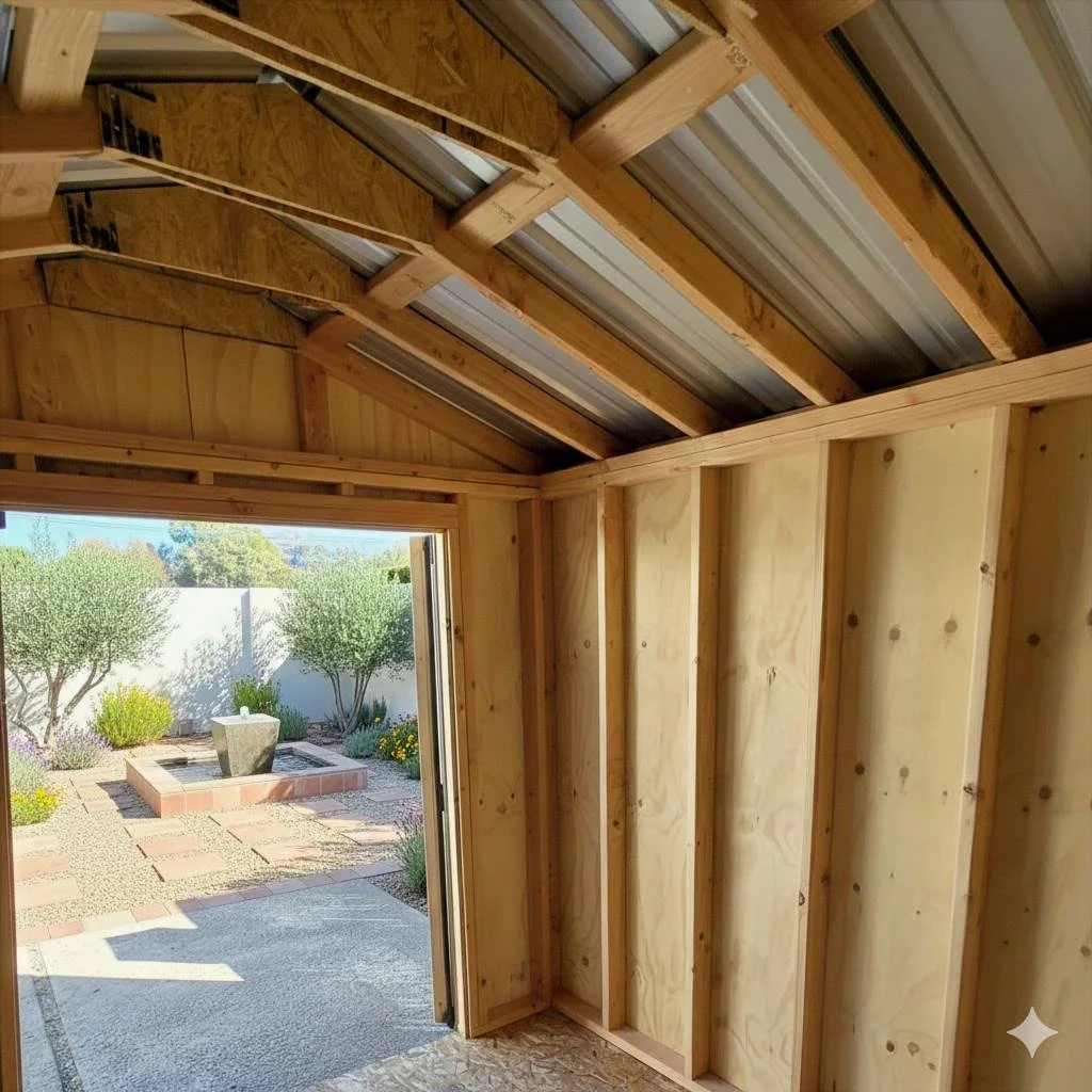 Our sheds feature ribbed Galvalume steel roof panels, designed for Southern California climates. They offer corrosion resistance, high heat reflectivity, fire resistance, and a long lifespan of 40–60 years—twice that of traditional galvanized steel.